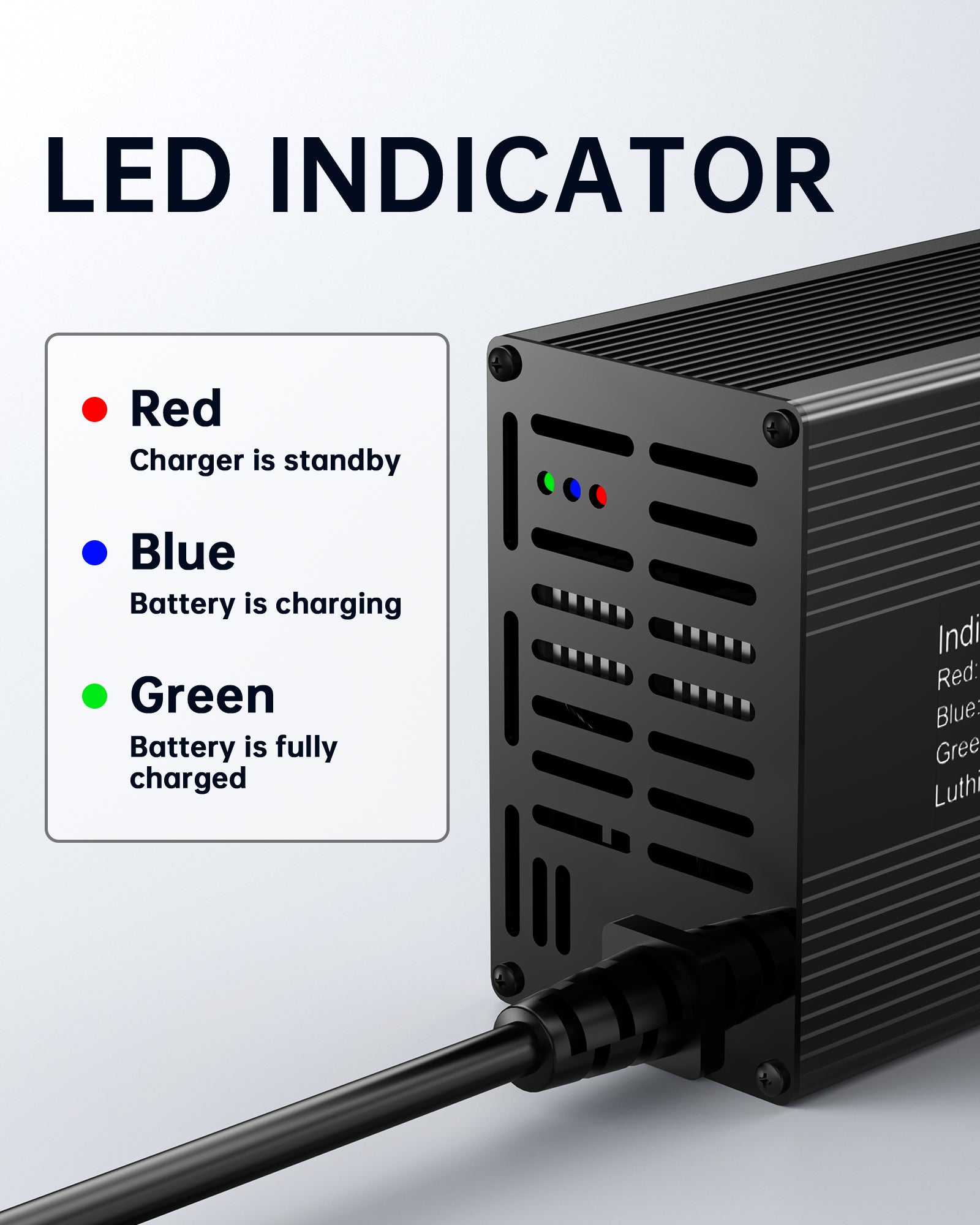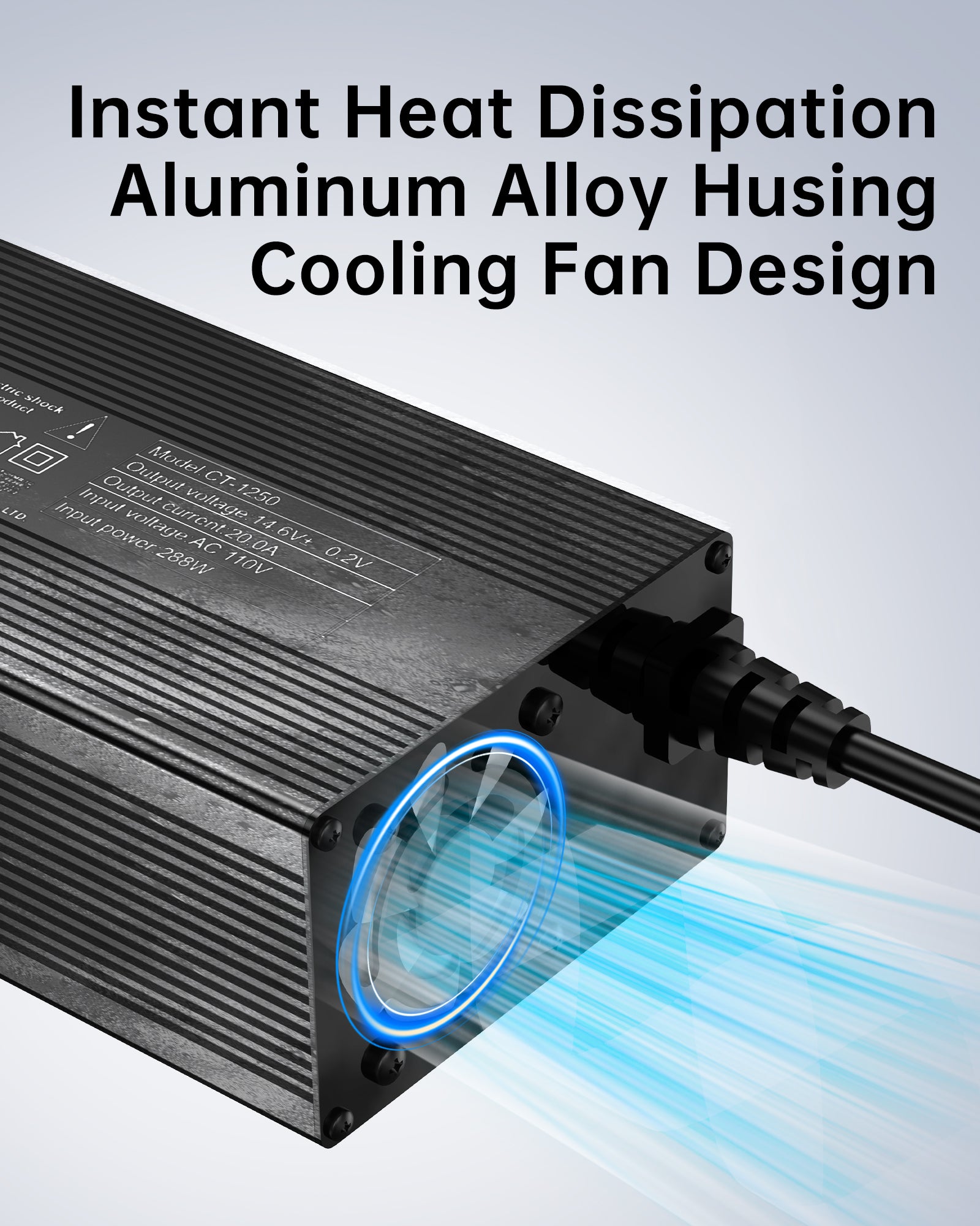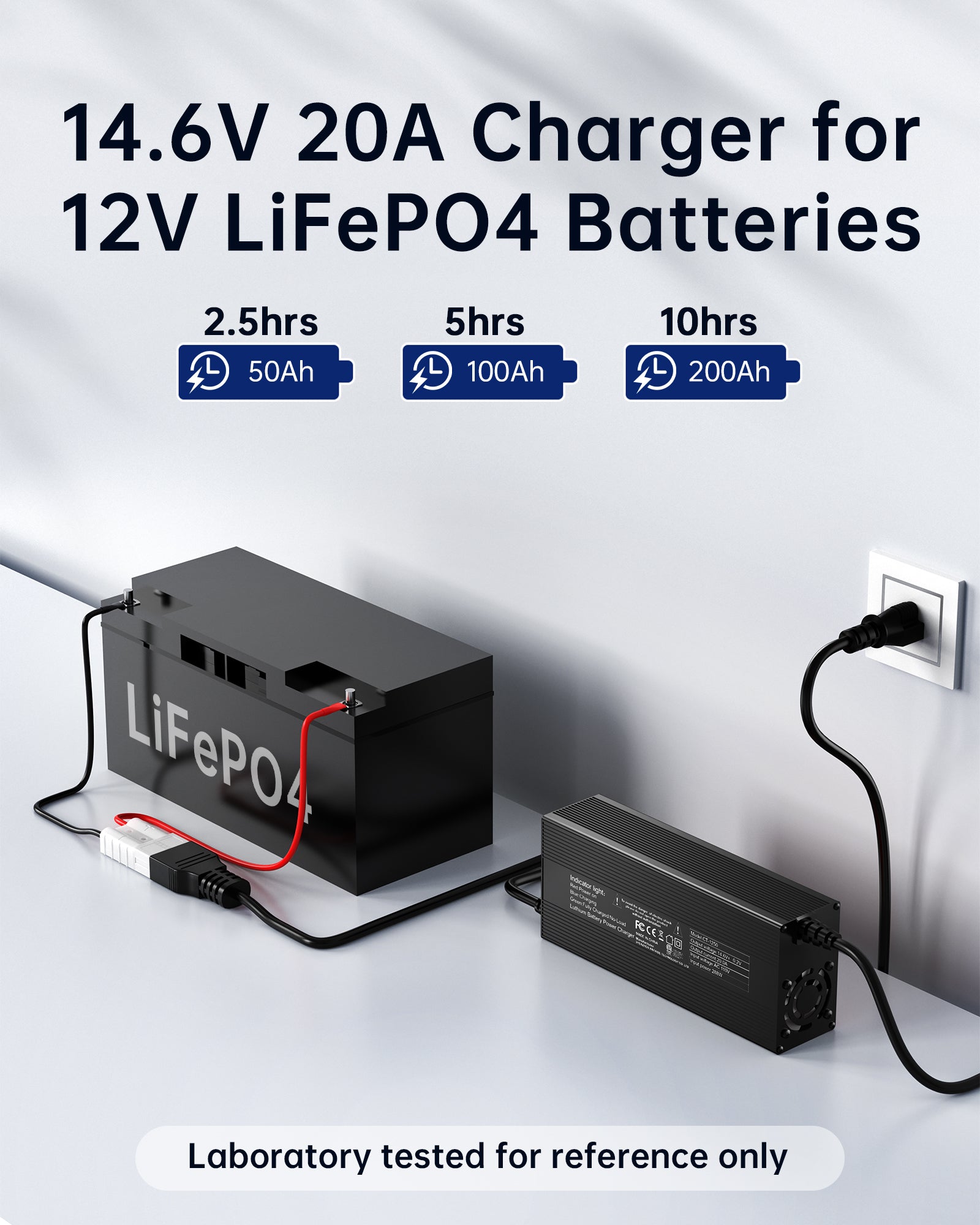 KWRNVO 14.6V Charger for LiFePO4 Lithium Battery with Quick Connector, LED Indicator, Smart 0V Activation Power Adapter for 12V 20A Lithium Battery Cycle Rechargeable Batteries of Boat, RV